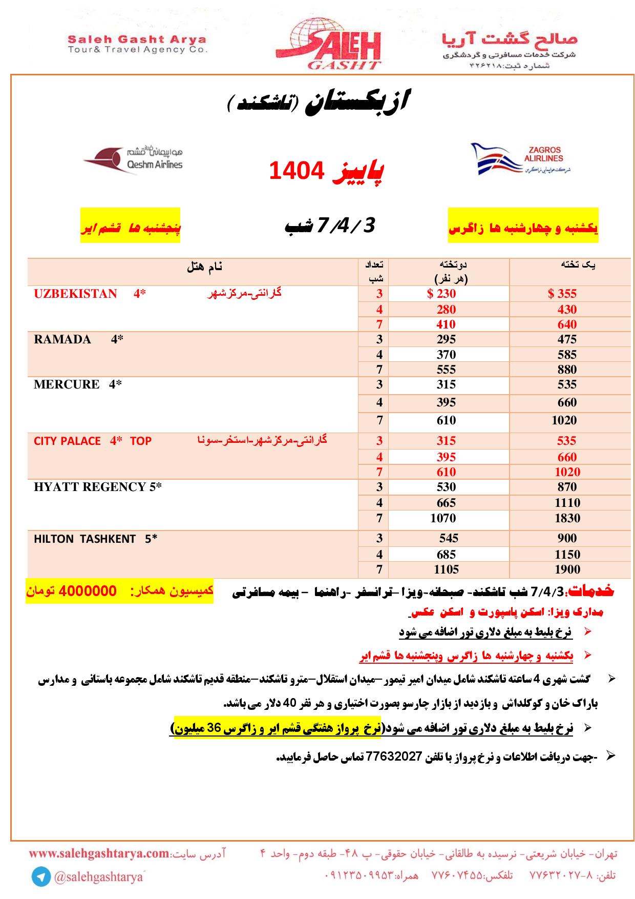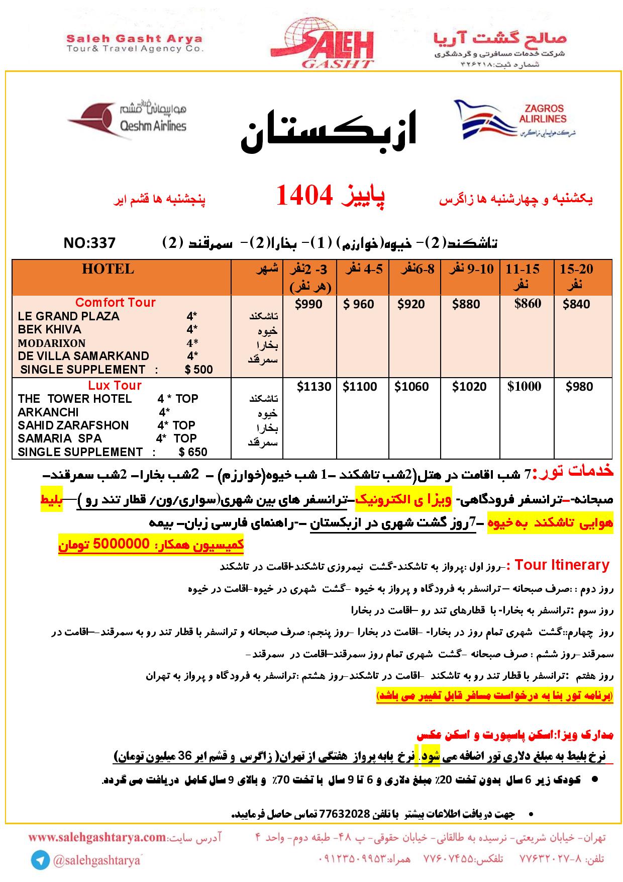 تور ترکیبی ازبکستان و تاجیکستان پاییز 1404