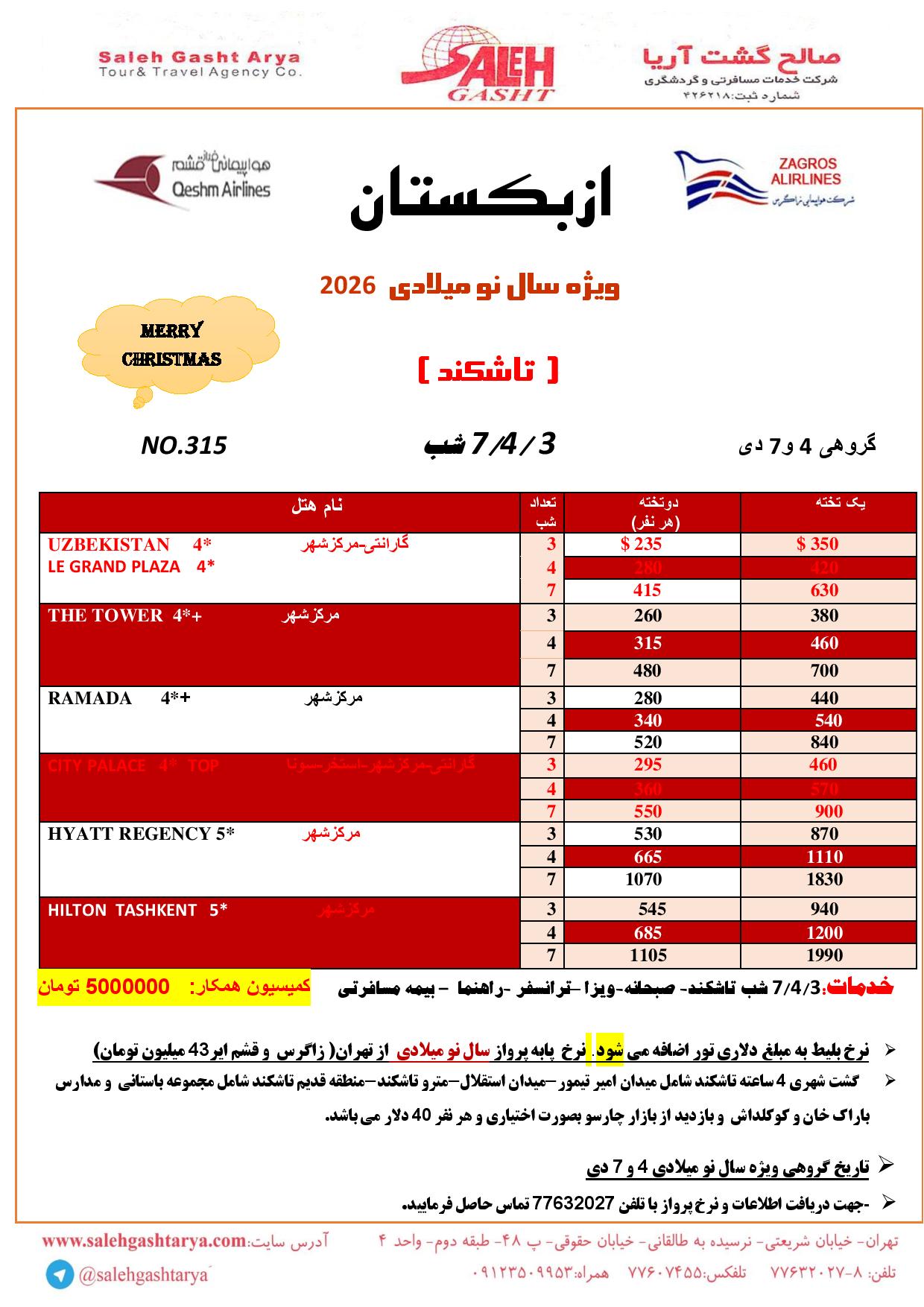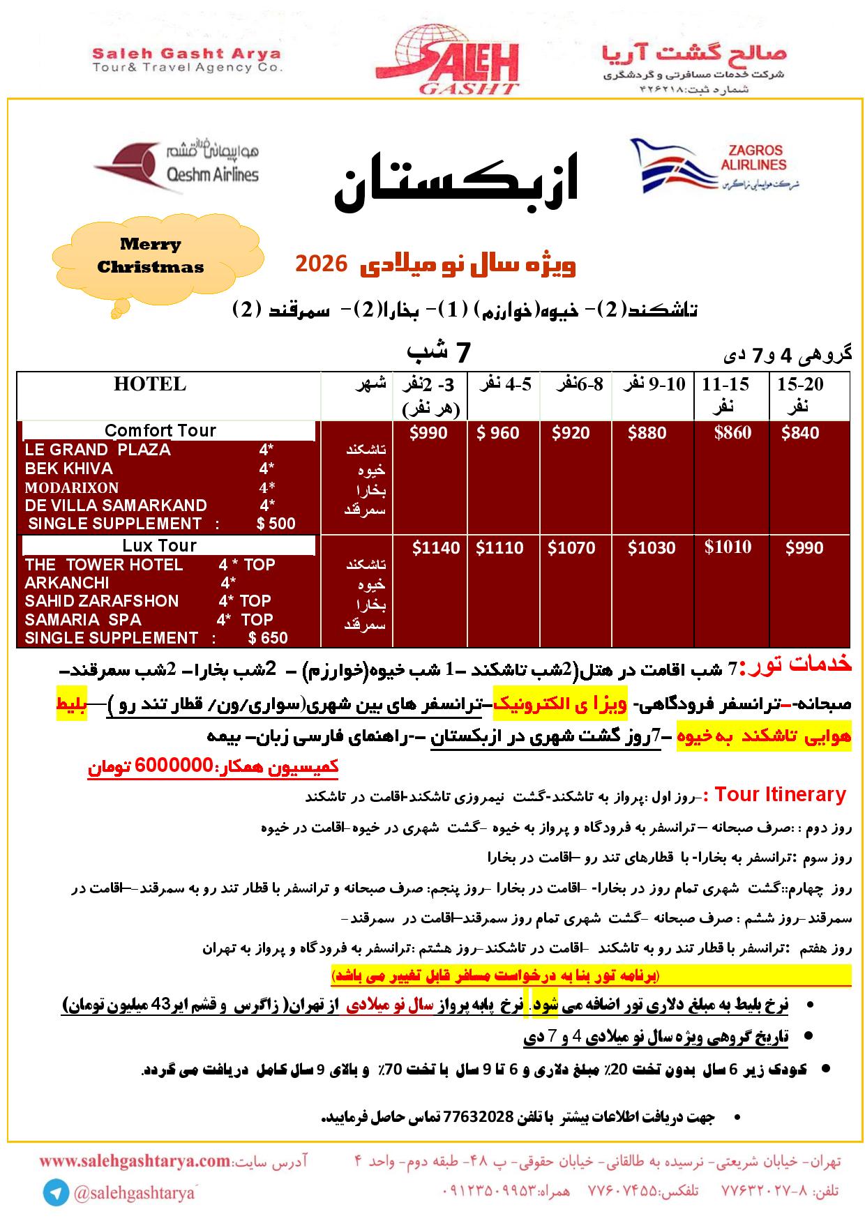 تور ترکیبی ازبکستان و تاجیکستان ژانویه 2026