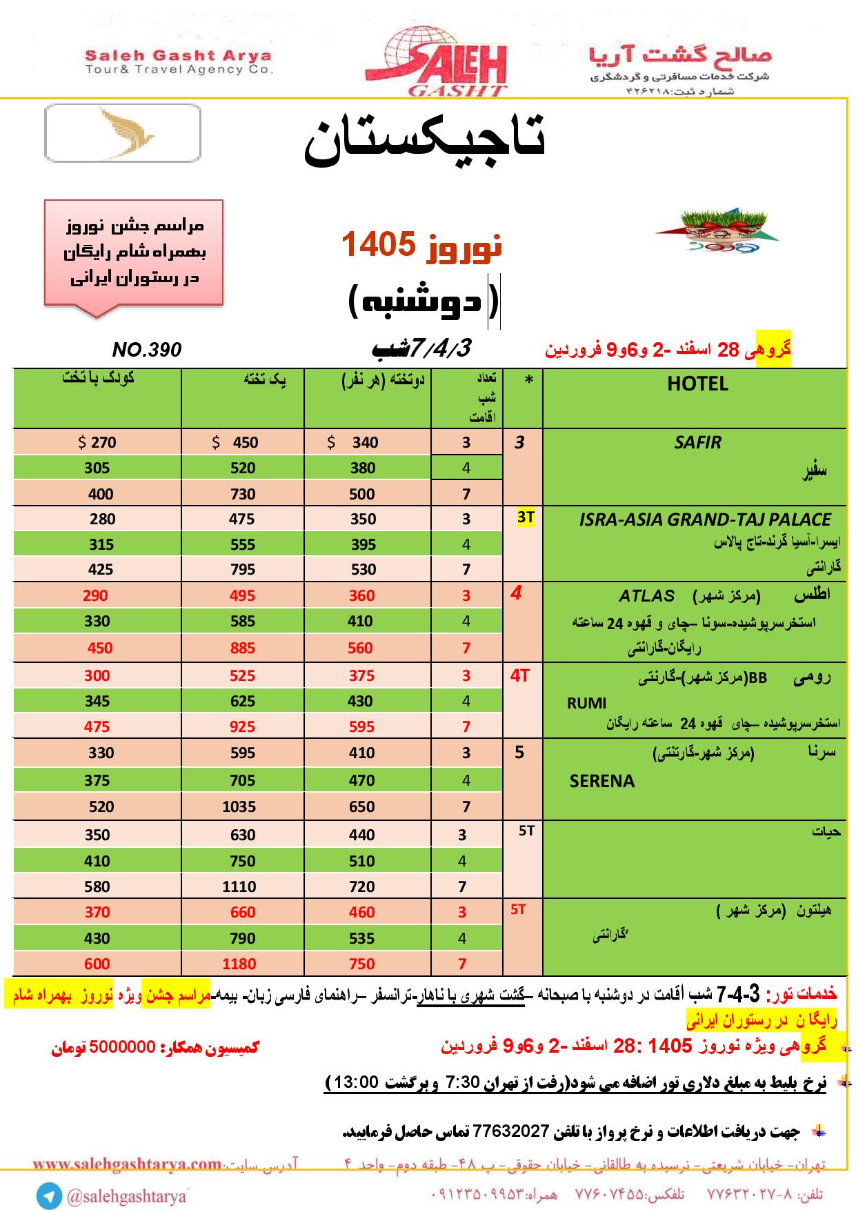 تور ترکیبی تاجیکستان و ازبکستان و قزاقستان نوروز 1405