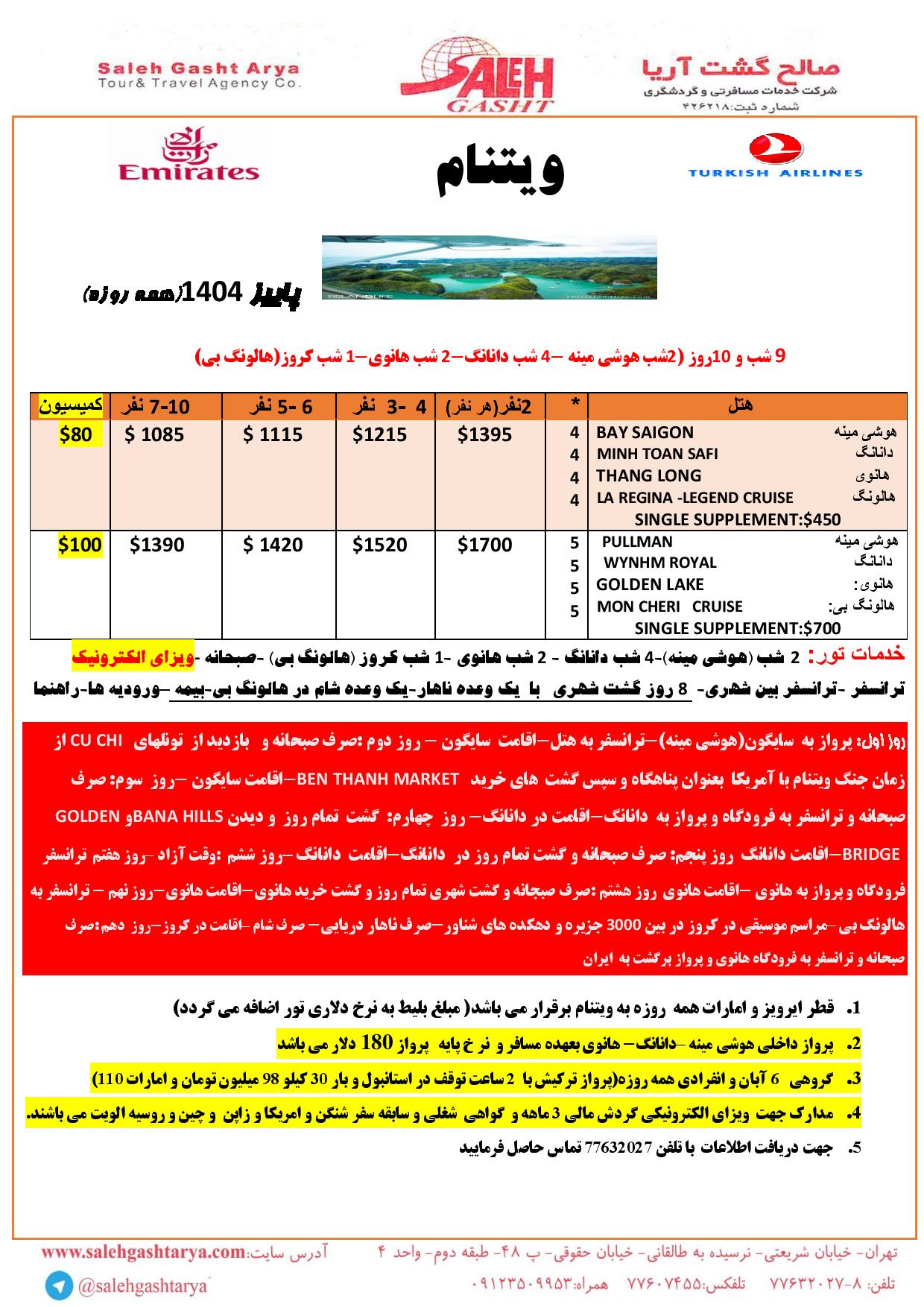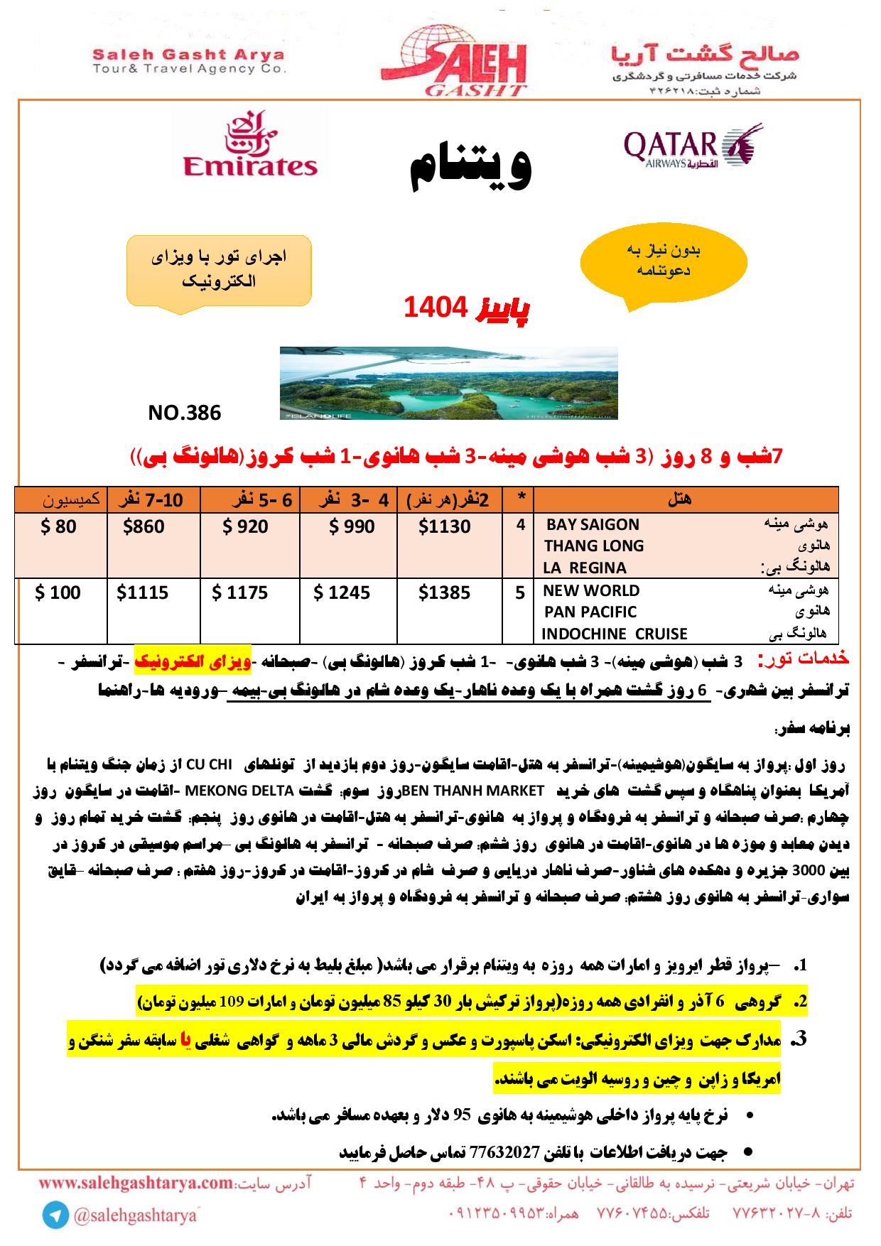 تور هوشی مین+دانانگ +هالونگ +هانوی پاییز 1404 ایرلاین (وسیله نقلیه): قطر و امارات قیمت از : تماس بگیرید وضعیت تور : در حال اجرااطلاعات تکمیلیدانــلود پکـــیج تور ویتنام پاییز 1404 ایرلاین (وسیله نقلیه): قطر و امارات قیمت از : تماس بگیرید وضعیت تور : در حال اجرااطلاعات تکمیلیدانــلود پکـــیج