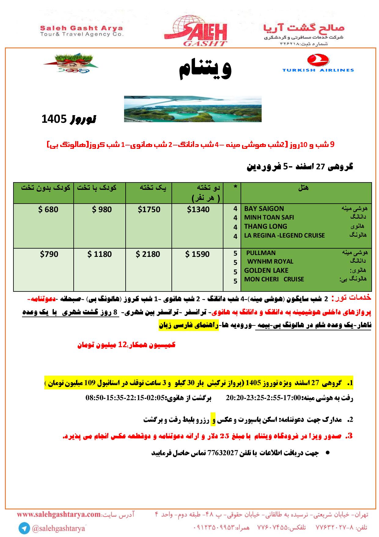 تور ویتنام نوروز 1405 ایرلاین (وسیله نقلیه): قطر و امارات قیمت از : تماس بگیرید وضعیت تور : در حال اجرااطلاعات تکمیلیدانــلود پکـــیج تور ویتنام نوروز 1405 ایرلاین (وسیله نقلیه): قطر و امارات قیمت از : تماس بگیرید وضعیت تور : در حال اجرااطلاعات تکمیلیدانــلود پکـــیج